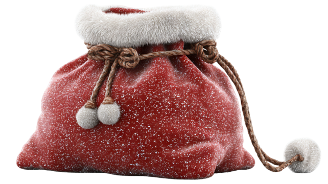 Christmas Red Present Sack with Drawstring Isolated PNG