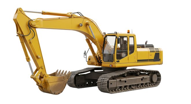 3D realistic yellow excavator isolated