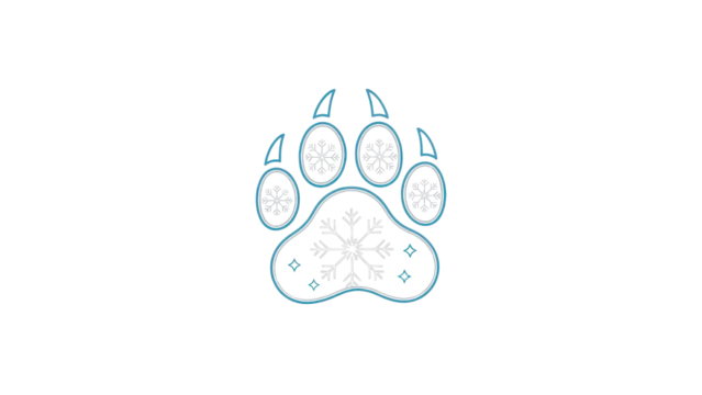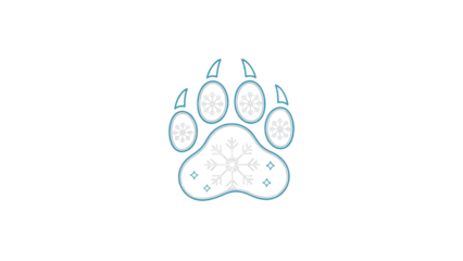 Winter Animal Paw Print Vector Icon with Snowflakes and Minimalist Blue Line Art isolated PNG with Transparent Background