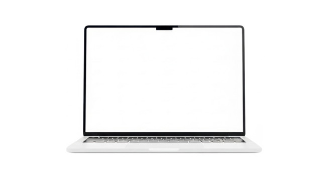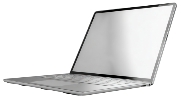 Sleek silver laptop displaying a blank screen on a modern on transparent background