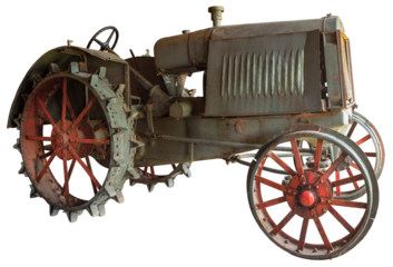 Vintage wheeled tractor for agriculture on a transparent background.