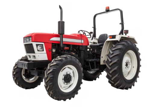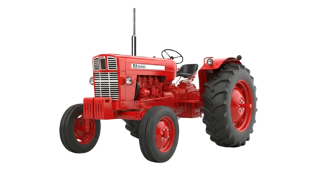 Agricultural red tractor on transparent background.  Topics related to the agricultural world. Image for graphic designer. Agricultural job offer. Organic farming Transparent background png cutouts.