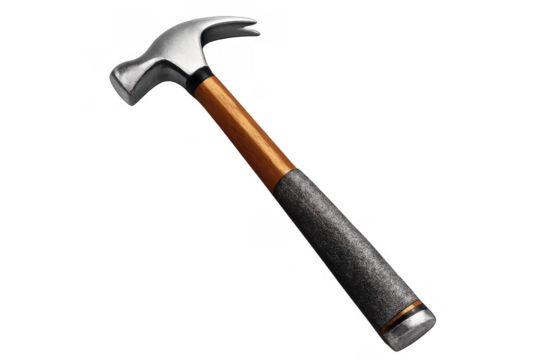Claw hammer with steel head and wood handle, essential tool for carpentry, construction, and diy projects, transparent background