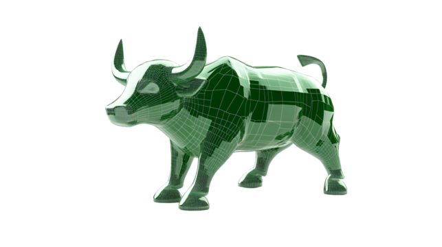 Green Bull Market Symbols 3D Depiction Isolated