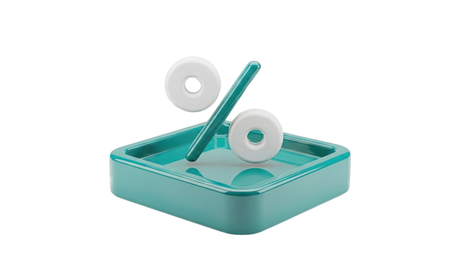 3D Icons: Dollar Sign, Up/Down Arrows, and Percentage Symbol