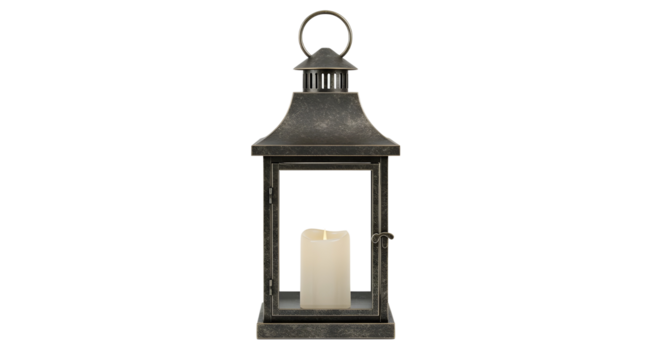 Vintage lantern with intricate scrollwork on transparent background