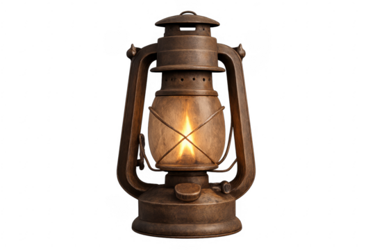 Vintage oil lantern illuminating light, an old rustic kerosene lamp providing warmth and traditional outdoor camping illumination