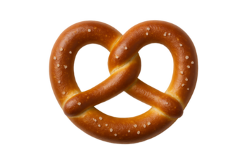 Fresh golden-brown soft pretzel with coarse salt isolated on transparent background, traditional German snack, perfect for bakery, Oktoberfest, street food, and delicious savory treats
