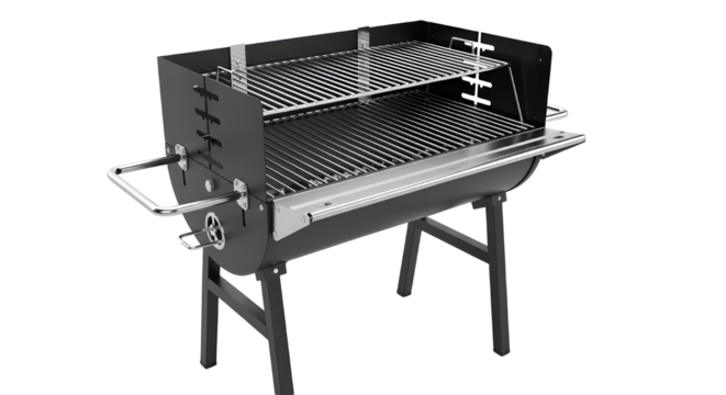 Charcoal BBQ Grill with Adjustable Grates and Side Shelf on Transparent Background