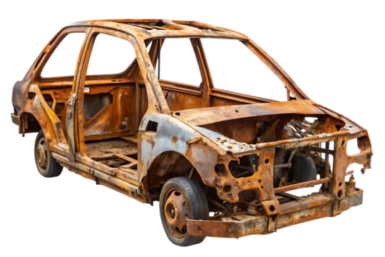 Rusty Abandoned Car Frame Isolated on White Background – Transparent PNG, AI Generated