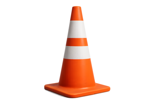 Orange traffic cone isolated on transparent background