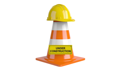 Traffic cone with yellow construction hat isolated on white background