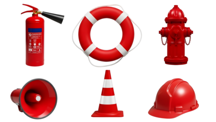 Traffic safety cones and warning signs for road hazard awareness, cut out transparent