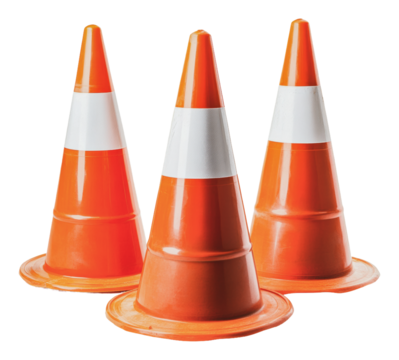 Orange Traffic Cones and Hard Hat isolated on a transparent background orange cone construction