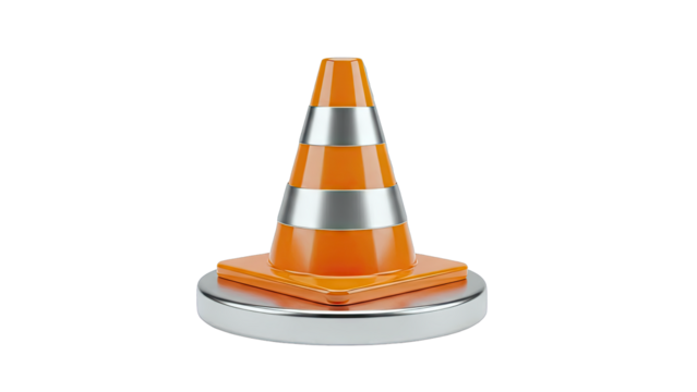 Orange Traffic Cone with Silver Stripes on a Metallic Base