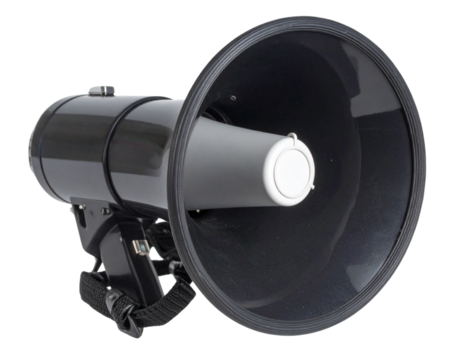 Large Traffic Police Megaphone with Shoulder Strap, front-facing view, isolated on transparent background.