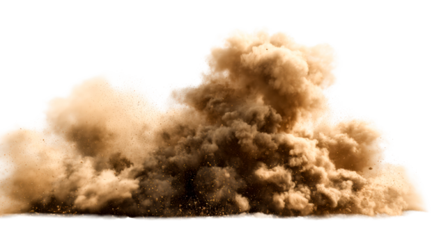 Powerful dust explosion erupts scattering dirt and debris, showcasing dramatic force and motion suitable for disaster or action scenes