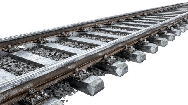 Ultra-Realistic Railway Track with Metal Texture on Transparent Background