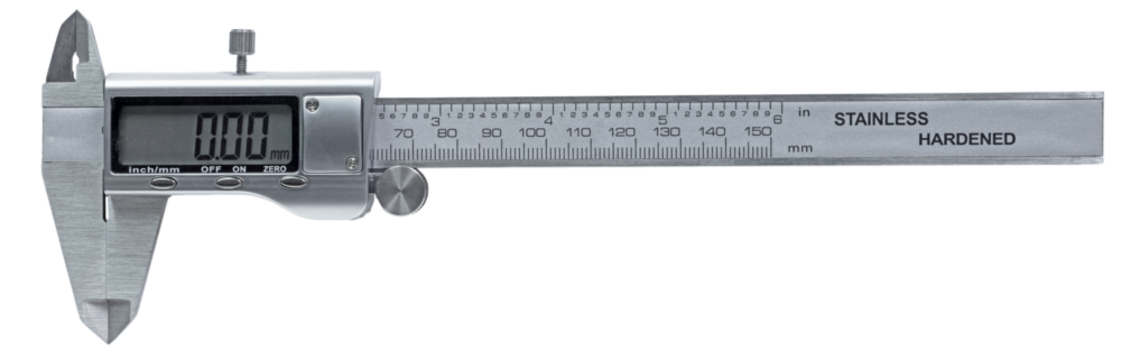 Electronic digital caliper isolated on white background. The precision tool, die cut transparent PNG
