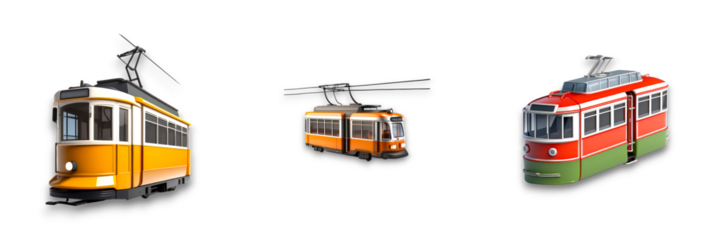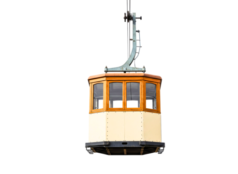 Rope-tram vehicle isolated on transparent background, PNG format for urban transportation design and 3d rendering projects