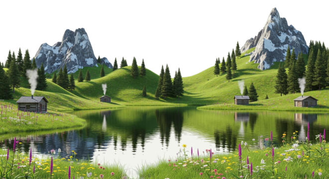 Serene lake forest mountain, pristine water reflection isolated landscape, majestic hill scenery environment nature, tranquil scenic beautiful, panoramic natural adventure