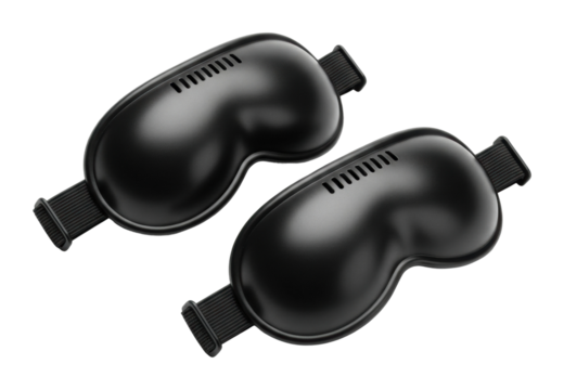 Black silk sleep mask for peaceful rest and relaxation at home isolated on transparent background