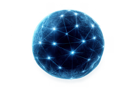 Dynamic abstract sapphire blue volumetric wave structure resembling polished glass or viscous liquid on a transparent background, concept of high-speed data transfer