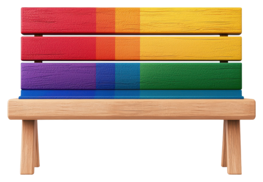 Rainbow Colored Wooden Bench Symbolizing Pride on Transparent Background