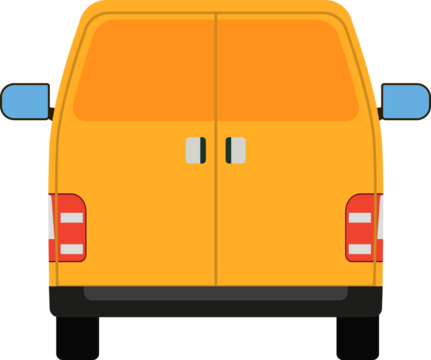 A white cargo van angled slightly from a top-right perspective, set against a dark background