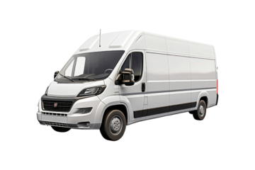 A cargo van for transportation services is isolated on a white background, suitable for mockups, advertising, logistics, and delivery concepts