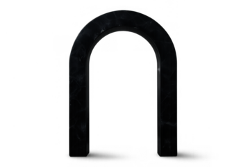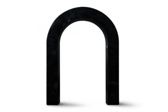 Black arch entrance creating portal effect on transparent background. Minimalist stone gate opening, symbolizing transition and access