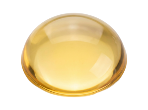 A single translucent yellow capsule of vitamin D supplement. isolated on transparent background