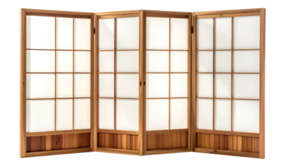 A folding, traditional room divider with wooden frames and translucent paper panels