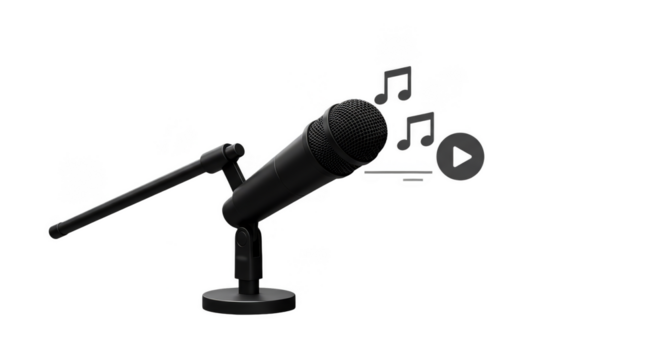 Isolated Black Microphone Audio Equipment Sound Studio Transparent Background