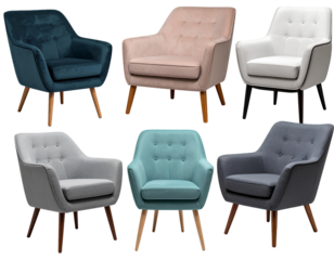 Firefly_collection of midcentury modern arm chairs in various colors isolated on a transparen