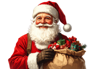 Firefly_Chic wicker hanging egg chair with cozy white cushions showcased against a transparen - Firefly_A cheerful, nostalgic Santa Claus holding a sack of toys and wearing a classic red su  (2)