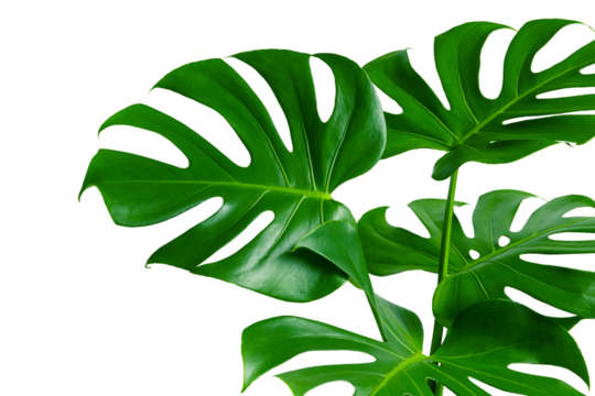 Selective focus beautiful monstera leaves on white color for decorating design transparency background.Tropical botanical