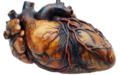 Transparent 3d digital model of human heart with detailed arteries