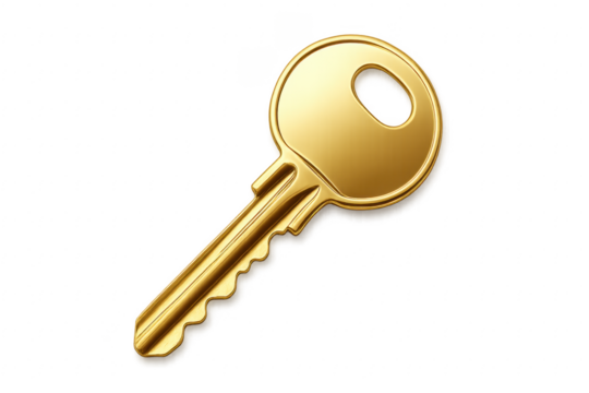 Golden key on transparent background symbolizing security