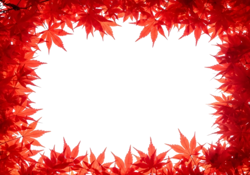Vibrant red maple leaf border frame isolated on transparent background for decoration