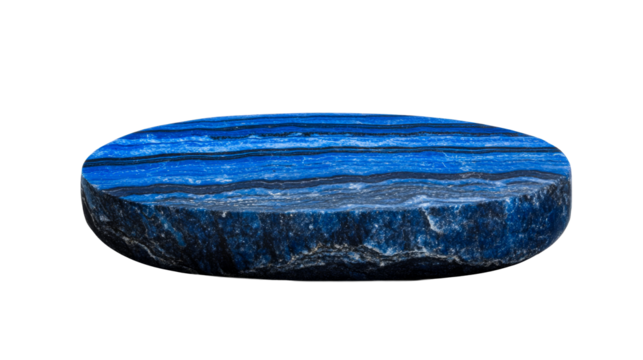 Blue striped agate slice, artistic geology gemstone mineral, cut out transparent