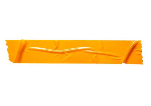Wrinkled orange adhesive tape strip, sticky duct tape piece. Isolated on transparent background, png