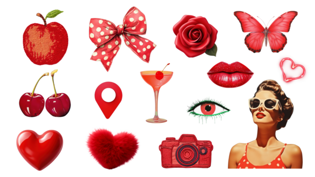 PNG red aesthetic  design element set, transparent background