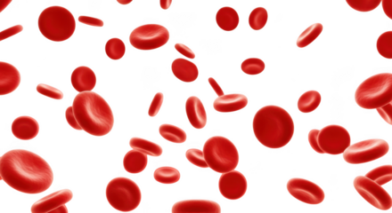 Numerous red blood cells floating in a fluid, isolated on transparent background