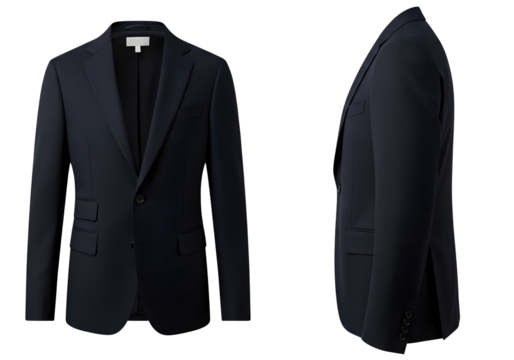 Navy blue blazer, textured, pocket square, isolated on transparent background