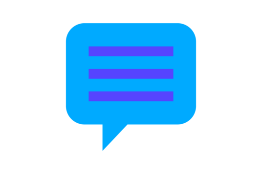 Blue chat message speech bubble icon representing online communication, conversation, text messaging, and social media