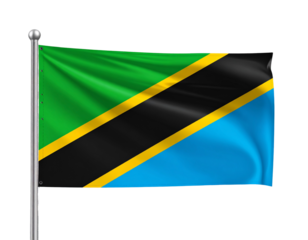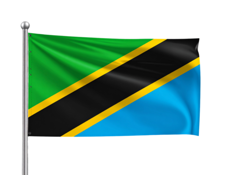 Flat Vector Style Tanzania Flag with Diagonal Bands, Transparent Background PNG