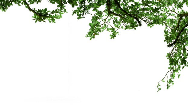 Lush green leaves form a border against transparent background
