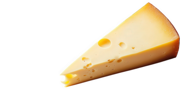 wedge of cheese with a smooth. yellow surface and small holes. set against a plain white background the focus on the cheese emphasizes its texture and color. making it appealing for culinary contexts