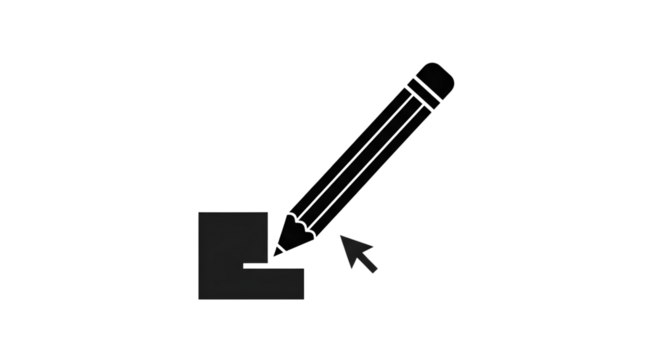 A pencil drawing a square isolated on transparent background the pencil is black and the square is also black the image is simple and clean, with a focus on the pencil
